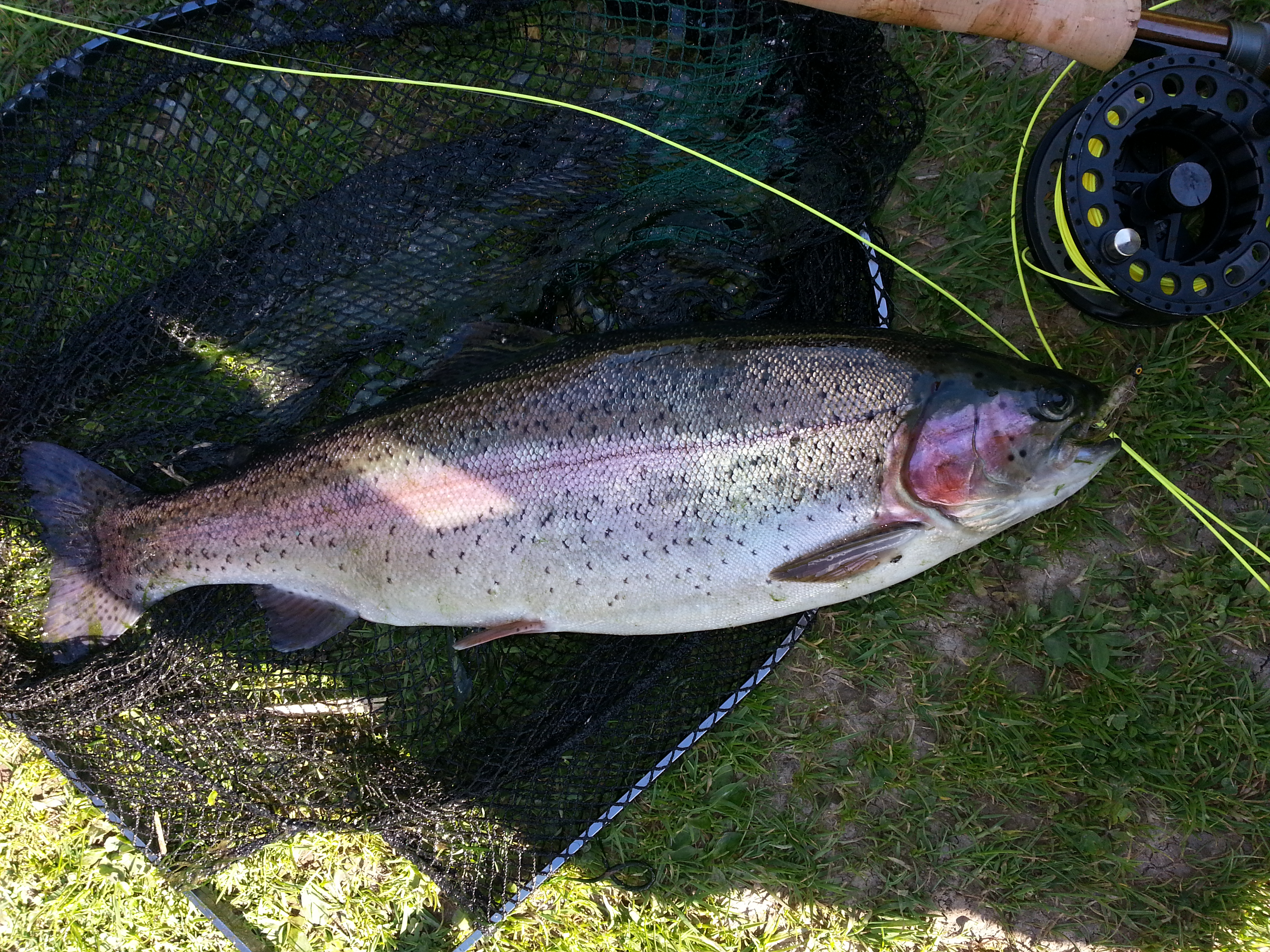 First outing of the season awarded me with four nice hard fighting rainbows from Chalk Springs fishery. There’s one in the smoker as I speak to enjoy with dinner later together with a glass of white wine. I had to work hard for this last fish which finely took an Appetizer fly. Not tied one of those on for years. Just happen to have a couple in my fly box. It worked so well in the past when all else failed. To sum run up: Chalk Springs is still a very nicely kept fishery, well stocked and can be quite challenging.