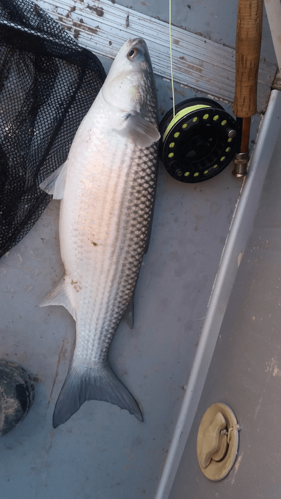 Had a quick session on the Adur last night for Mullet. I fished with 2 flies. A Romeys Shrimp on the point and a Mud Shrimp Pattern as a dropper. With lots of Thick Lip Mullet to cast at I soon had a take. After a long hard scrap I landed a nice 3lb fish then hooked but lost another. Interesting, both fish took the Mud Shrimp