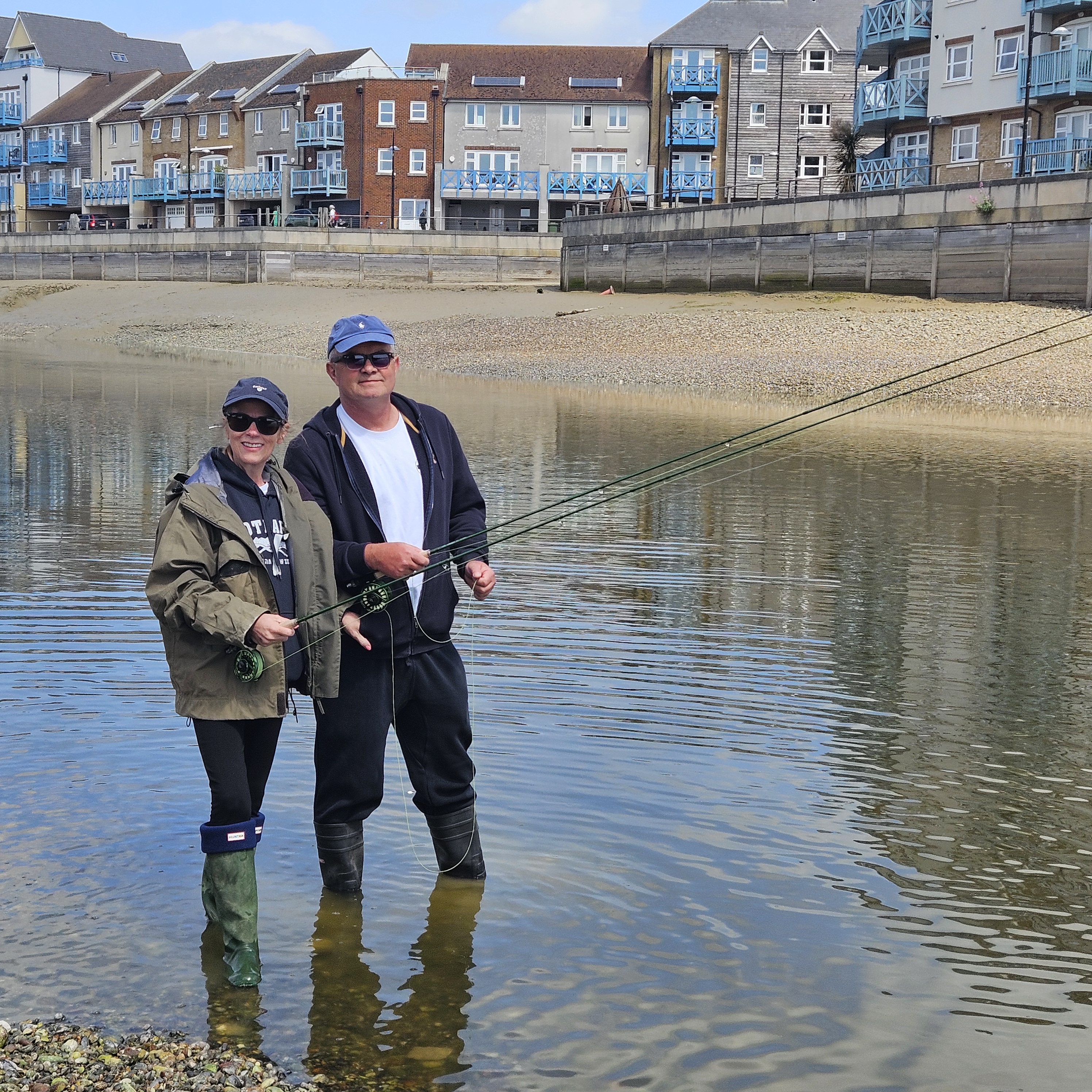 Sarah and Paul. Budding, new fly fishers. Enjoying a birthday lesson on the river Adur.